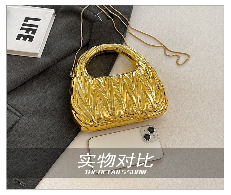 Make a bold statement with this elegant metallic evening clutch designed for special occasions.